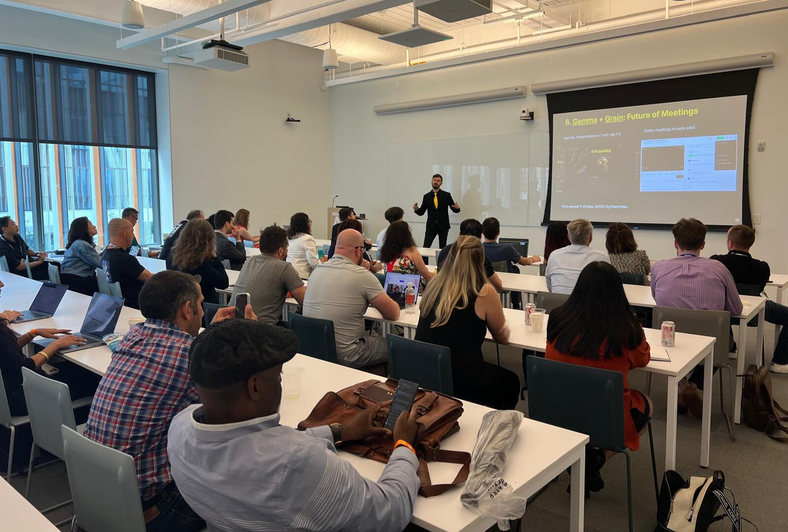 (⬆ Your instructor teaching practical AI in New York, Cornell Tech, in a golden tie, to 100+ business leaders)